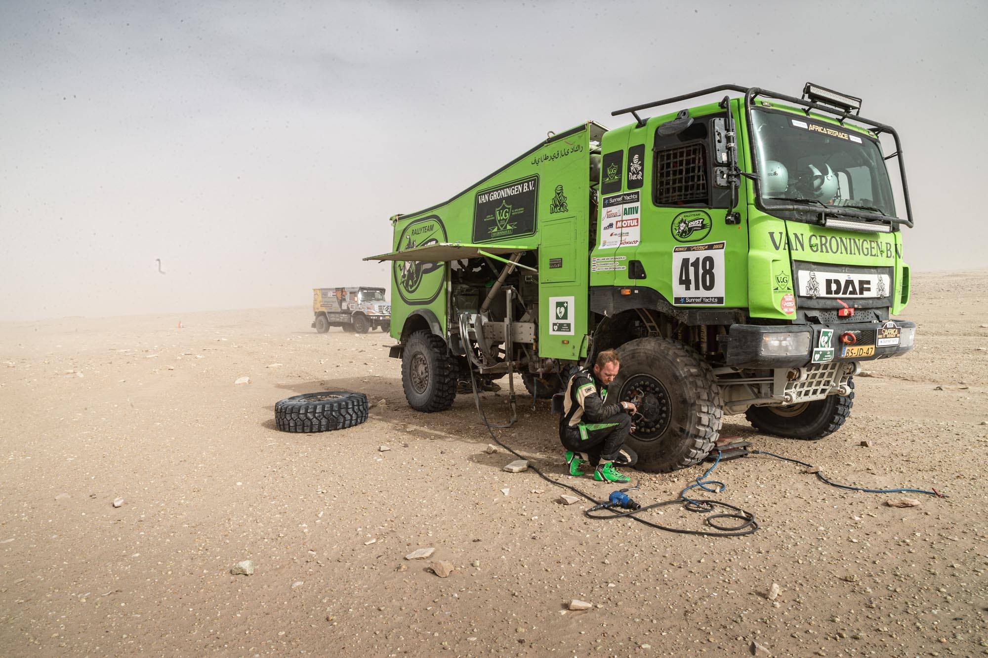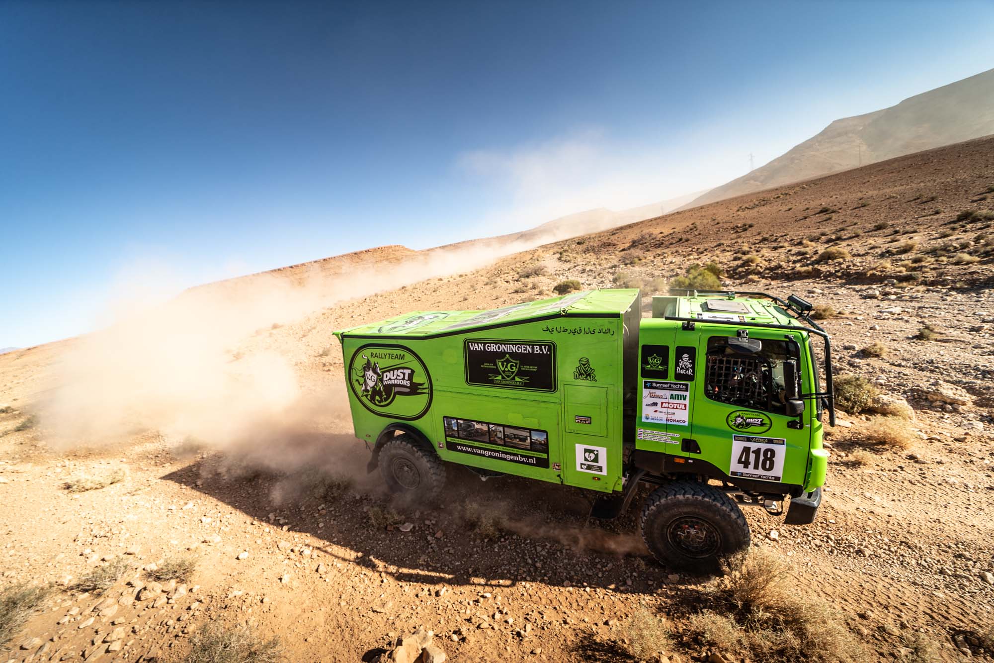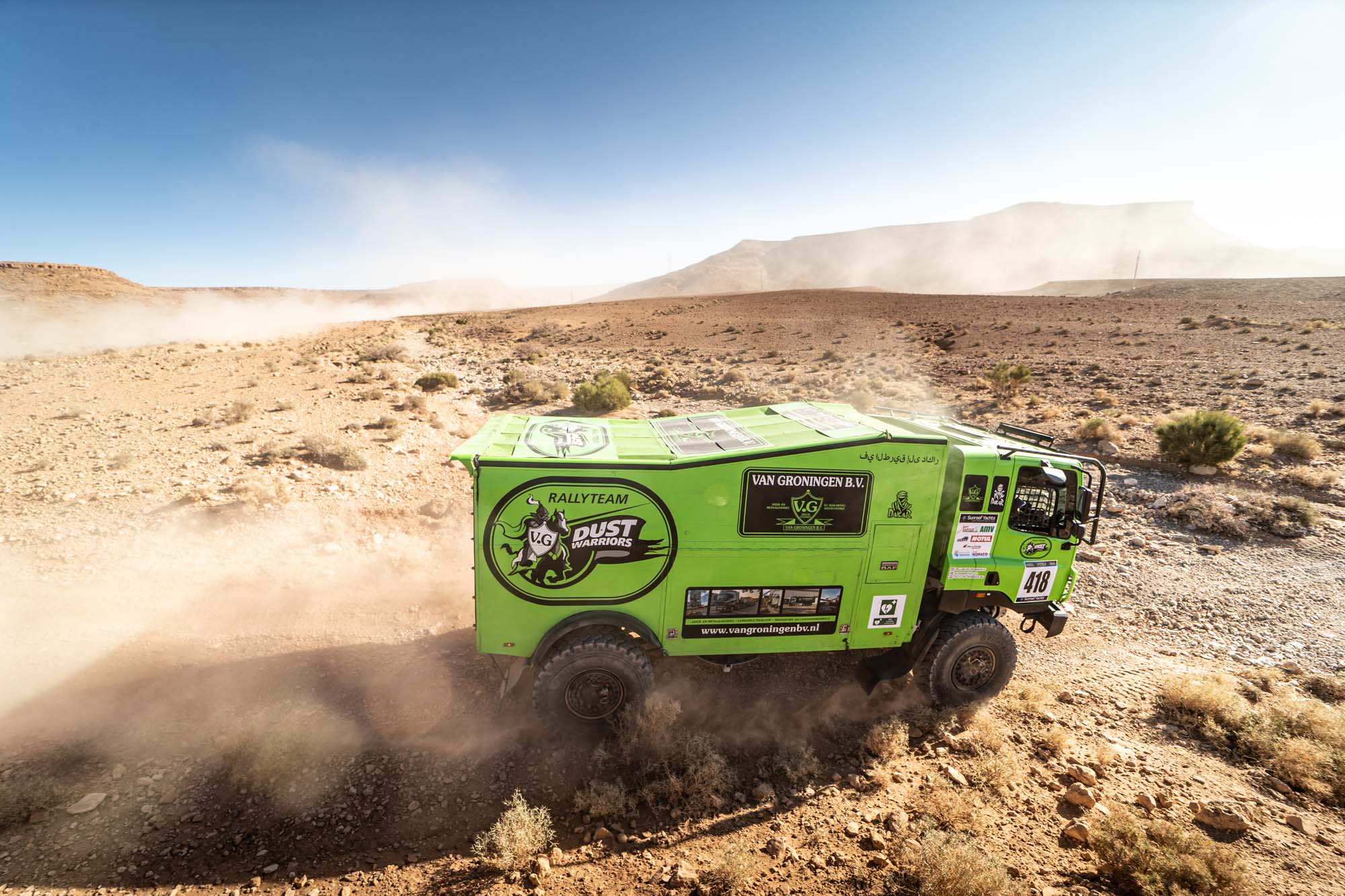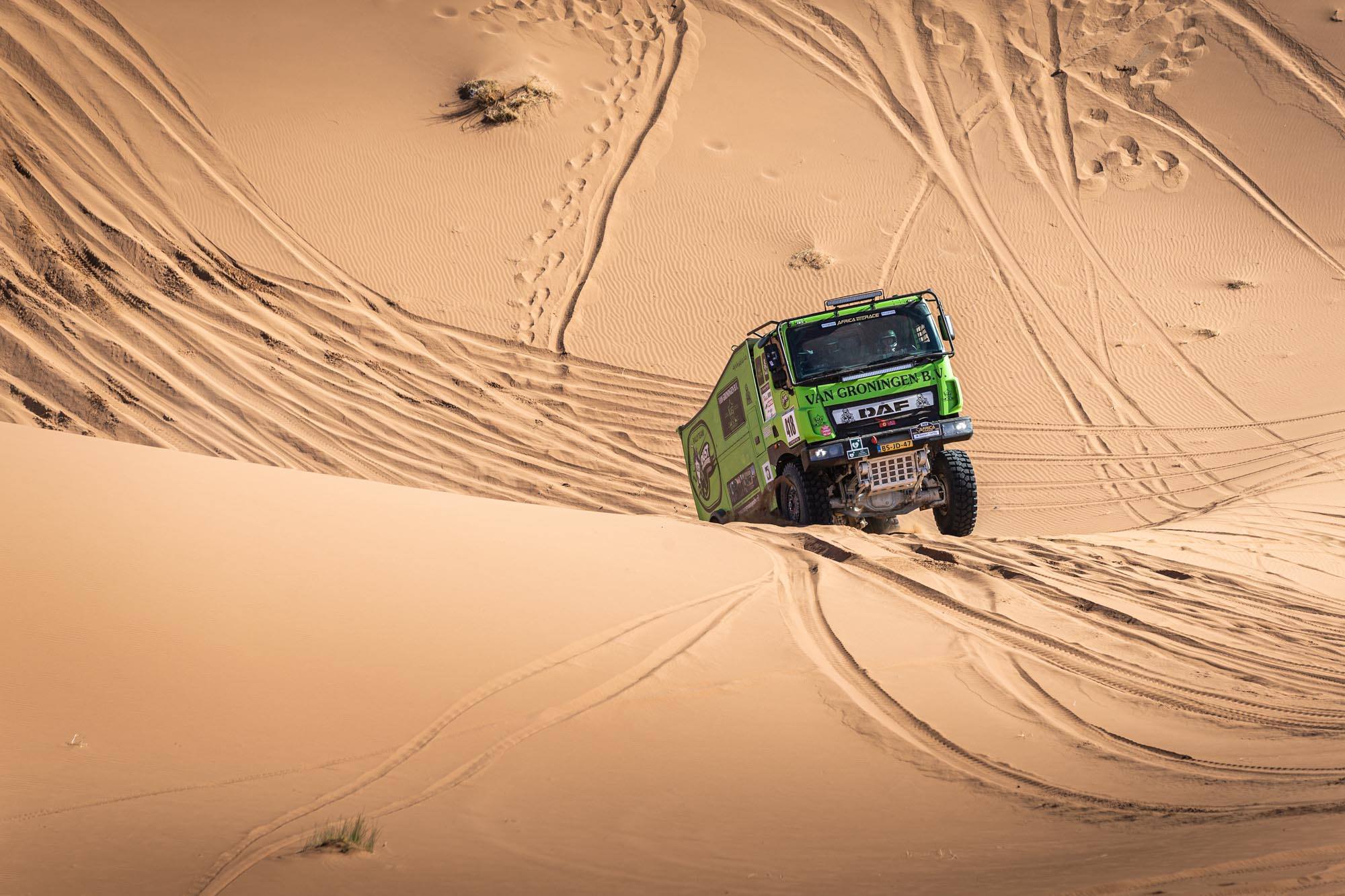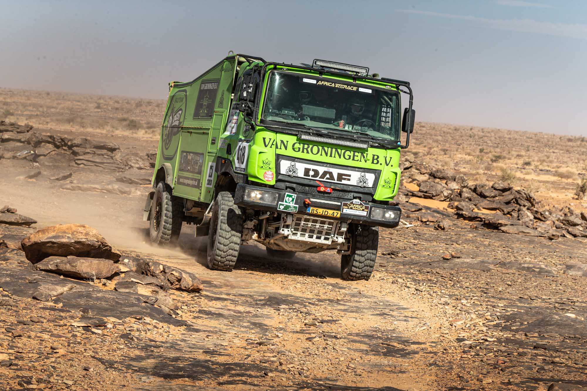 Na aankomst op 4 januari begon het team in Tanger met een medische keuring. Bij aanvang van de rally was het voor het team flink wennen aan de rotsachtige ondergrond, het stof, kuilen, flinke duinen en hier en daar kippen op het pad. Op de derde dag kreeg het team te maken met twee lekke banden en een gekantelde wagen, na 150 kilometer door de duinen in het donker. Gered door de recovery truc en met nog een lekke band op 10 kilometer vóór de bivak arriveerde het team daar uiteindelijk om 07.00 uur ’s morgens. Tijdens de rest van de rally werd de navigatie flink op de proef gesteld en er werden flink wat banden gewisseld. Op dag 5 wist team DAF een mooie prestatie neer te zetten: zij arriveerden eerder in de nieuwe bivak dan het service team. En dat ondanks een lucht lekkage! Na een goed benutte rustdag (materiaal op orde brengen, de was doen en wat uitrusten) zette het team wederom een mooie prestatie neer: als 10e binnen gekomen na een lange etappe door het zachte zand van Mauritanië en hiermee 9e in het klassement. Tijdens de tweede helft van de rally wordt er door het team lekker gereden. Het mulle zand kan hen niet deren. ’s Avonds komt het service team in actie om de auto te herstellen. Op dag 9 vliegt tijdens de rit de koppelingsplaat er uit. Het service team schiet ter plaatse te hulp, maar het is tevergeefs: het was geen haalbare kaart meer te proberen tijdig binnen te komen. Gelukkig was er van diskwalificatie geen sprake en mocht er de volgende dag gewoon weer gestart worden. Na de laatste drie pittige dagen over ruig terrein eindigt het team uiteindelijk als 9e in het klassement. En mooie prestatie, die het team ook veel onderlinge gezelligheid heeft gebracht!